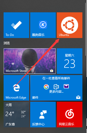 安装成功之后,会有一个Ubuntu的图标,我们可以把它当做其他应用一样固定在开始屏幕上。点击启动就可以打开Ubuntu的命令终端。初始安装还要设置用户名和密码。这个操作参考下一部分的配置。