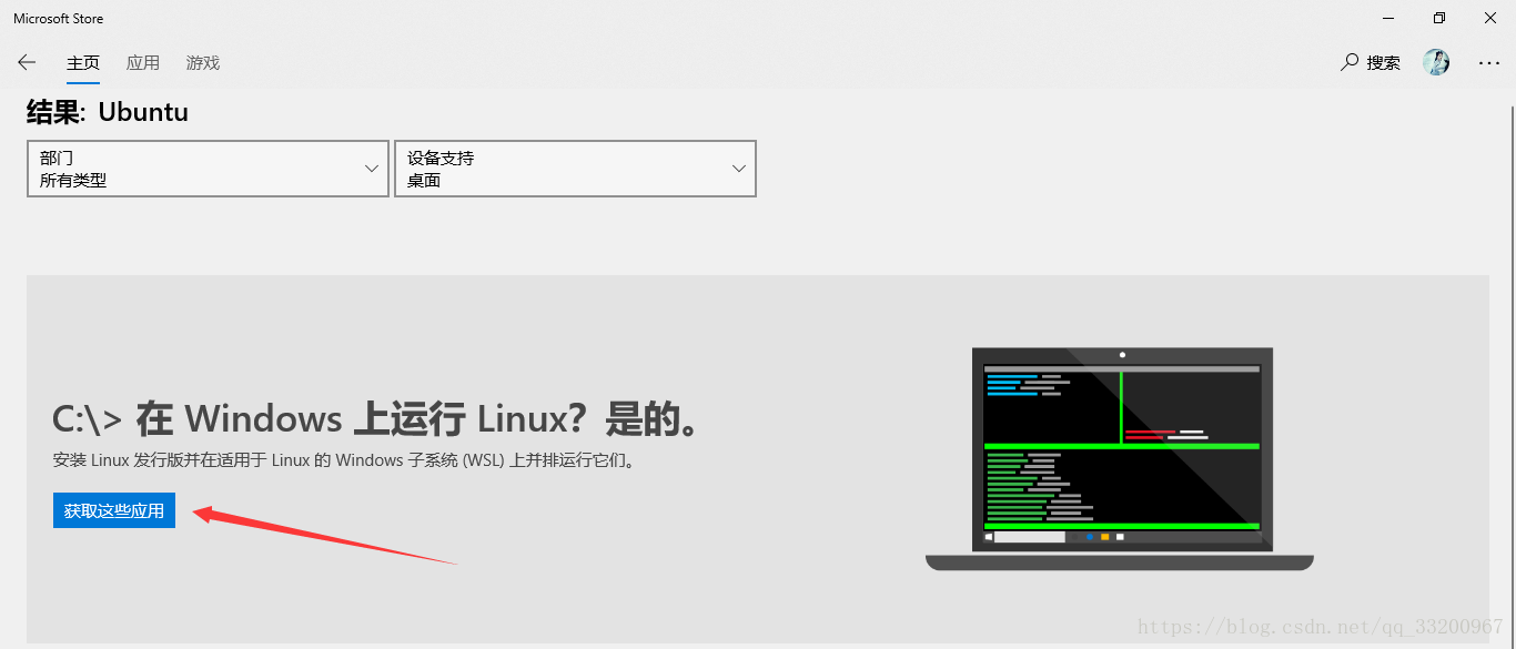 然后在应用商店上搜索Ubuntu,可以得到以下的结果,我们点击获取这些应用,进入到下一个页面。