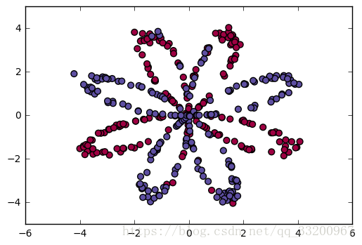 The dataset consists of a red and blue distribution. Its distribution chart is as follows: