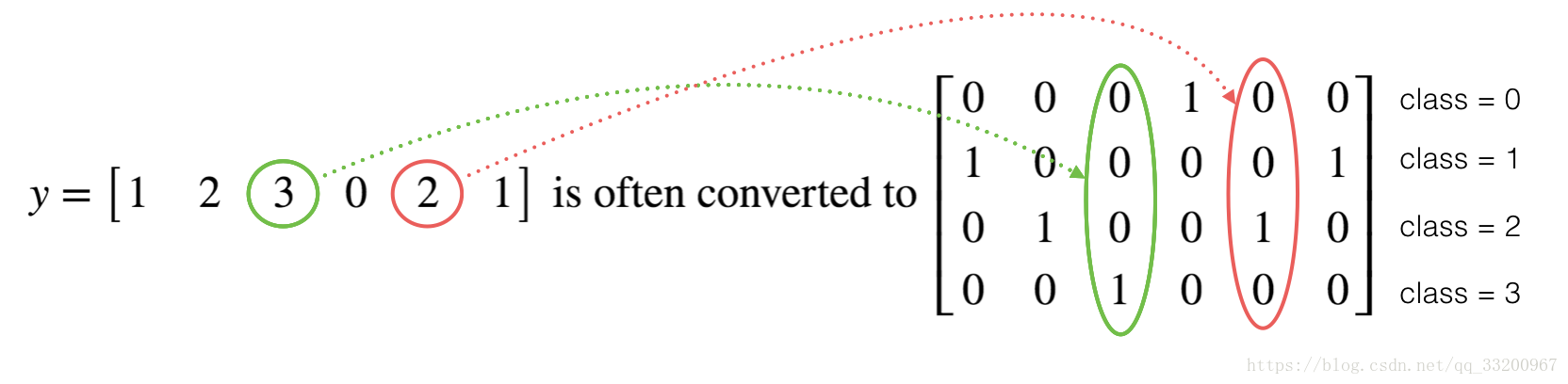 独热编码即 One-Hot 编码,又称一位有效编码,其方法是使用N位状态寄存器来对N个状态进行编码,每个状态都由他独立的寄存器位,并且在任意时候,其中只有一位有效。如下图所示: