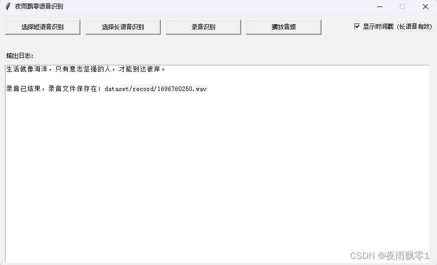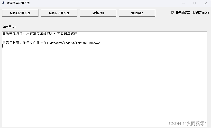 3. 长音频识别(时间戳),第二种是显示时间戳,可以知道每句话开始的时间和结束的时间,可以用于制作字幕。