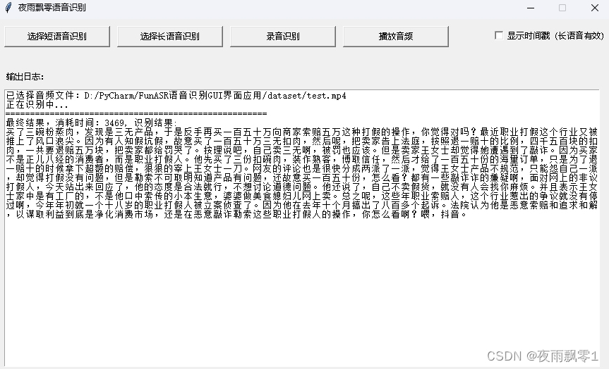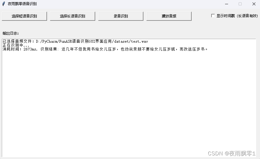 本文将介绍一个基于FunASR开发的语音识别界面应用,这个应用可以选择本地音频,也可以录音识别。支持多种音频格式和视频格式,可以对识别的结果加上时间戳做成字幕。