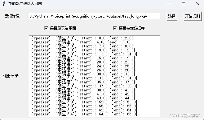 VoiceprintRecognition_Pytorch 是博主开源的一款声纹识别框架,该框架支持EcapaTdnn、ResNetSE、ERes2Net、CAM++等多种先进的声纹识别模型,也支持了MelSpectrogram、Spectrogram、MFCC、Fbank等多种数据预处理方法,支持AAMLoss、AMLoss、ARMLoss、CELoss等多种损失函数。该框架支持多种关于声纹识别的处理,比如声纹对,比声纹检索,以及本文章需要介绍的说话人日志(说话人分离)。